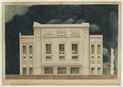 En juin 1911, Bourdelle parachève le dessin de la façade du Théâtre des Champs-Élysées. Cette douzième étude signe sa capacité à « tout concevoir en monument ». Si les figures de la frise et des cinq bas-reliefs sont encore en devenir, elles épousent néanmoins les lignes du nouveau temple de la musique. Aucune saillie ne doit « offusquer la muraille lisse » du Parthénon moderne.