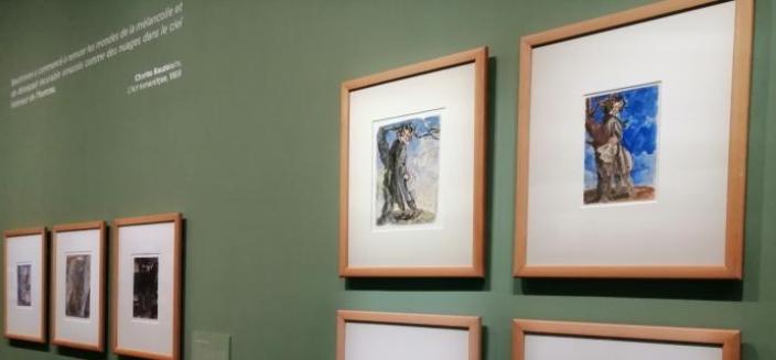 À l’encre ou à l’aquarelle, dans des couleurs sourdes ou éclatantes, Bourdelle emprunte à la grande peinture romantique française ou allemande pour représenter Beethoven méditant sous un arbre automnal, affrontant les éléments contraires avec une colombe pour amie ou immobile sur une croix de pierre, loin des hommes et des obligations.
