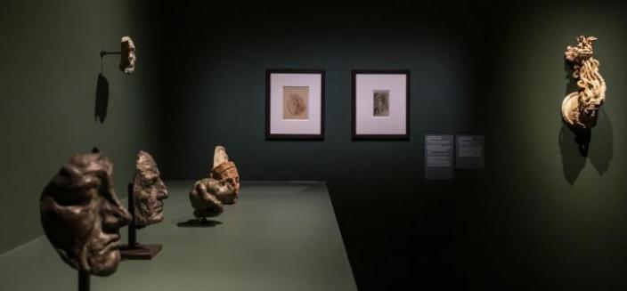 Le masque, qui fige le vivant au point de le pétrifier, est moins un « décor suborneur » que l’apparition de « la véritable tête et la sincère face » (Charles Baudelaire, « Le Masque », Les Fleurs du Mal, 1861). Avec ses plis et ses viscosités, avec ses yeux énucléés ou sa langue caressant un serpent, le masque fixe la mort à l’oeuvre, et dévoile la sexualité la plus archaïque. Le masque, cette tête décapitée de Jean-Baptiste que contemple la Salomé au jardin (1871) de Gustave Moreau, renvoie inexorablement à Méduse, cette gorgone mortelle dont Persée parvint à trancher la tête maléfique. À cet égard, Antoine Bourdelle, Pierre-Amédée Marcel-Berroneau et surtout Arnold Böcklin, avec sa Méduse effrayée (1897), ont livré des images d’autant plus médusantes qu’elles réunissent, sur une même face, Eros et Thanatos, l’amour et la mort.