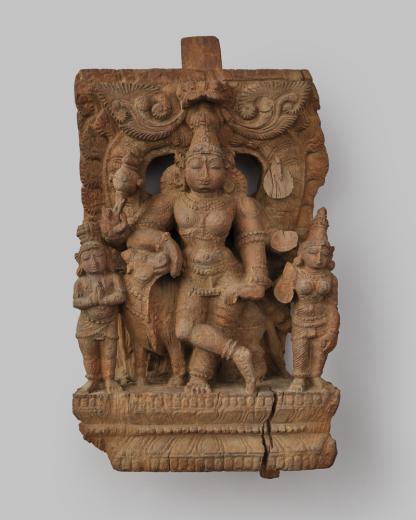 Bois de char de procession hindou, représentant Ardhanarishvara