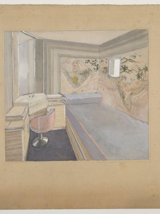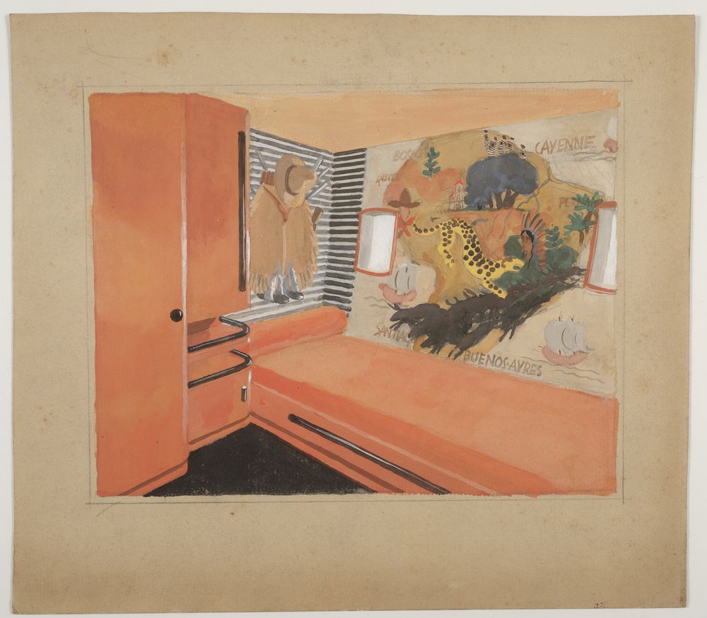 Les dessins conservés au musée Bourdelle se rapprochent de l'état final des cabines livrées pour le yacht d'Esders. On y retrouve les placages en bois clair et les courbes des barres de métal délimitant les meubles que Dufet utilisa pour le Normandie. Pour l'Aronia, Dufet privilégia le duralium, cet alliage d'aluminium inventé en 1908 et apprécié dans le monde du nautisme pour sa légèreté. Le motif de la carte murale, véritable invitation au voyage, fait écho à la fonction du yacht. C’est aussi un poncif des décorations conçues par Dufet qui imagine et dessine lui-même ces mappemondes, plus décoratives qu'exactes géographiquement, qui habillent les bureaux et les chambres qu’il conçoit. Symbole de puissance dans le bureau du secrétariat du maréchal Lyautey (où elle glorifie l’empire colonial français), la carte se fait, dans l’Aronia, geste artistique, les motifs naturels de forêts et de montagnes asiatiques se mariant aux bois précieux et aux tissus de la literie.