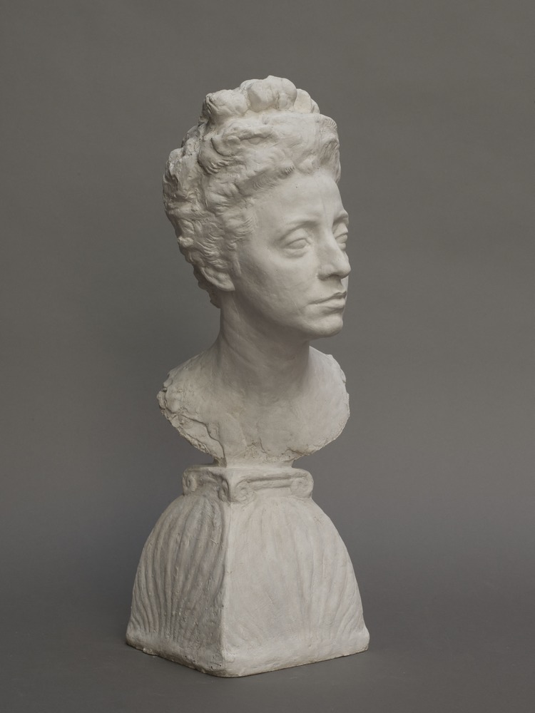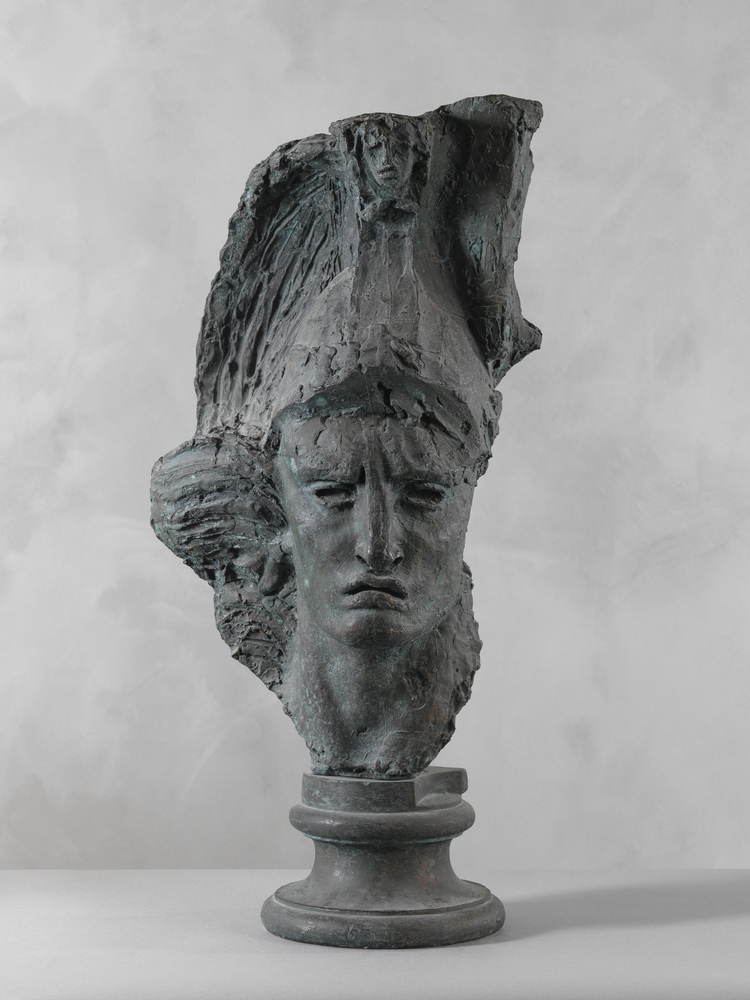 Avec cette tête de Dragon cuirassier destinée au Monument aux combattants de Montauban, Bourdelle accomplit une rare fusion du masculin et du féminin. Ce masque aux traits fins et à l’expression particulièrement dure est inspiré du visage d’Henriette Vaïsse-Cibiel, une jeune aristocrate de la région de Montauban, cousine d’un ami de Bourdelle. Pris de passion, Bourdelle lui dédie de nombreux poèmes entre 1897 et 1898. Le visage d’Henriette Vaïsse-Cibiel est transformé par Bourdelle en une tête androgyne, qui contraste avec les attendus de la virilité martiale de cette fin de siècle. Bourdelle rebaptise l’être aimé « Henriette Minerve », en hommage à la déesse de la guerre. Il lui écrit : « Le piquant de cette œuvre qui émeut ceux qui la voient, c’est qu’elle est inspirée du plus haut, du plus pur sentiment et de la plus douce admiration pour vous ».