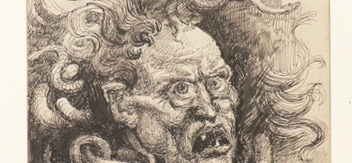 La Gorgone Méduse, créature monstrueuse aux cheveux de serpents, pétrifie les humains qui ont le malheur de croiser son regard. Selon Les Métamorphoses d’Ovide, Méduse aurait été violée par le dieu Poséidon dans le temple de la déesse Athéna. Ce personnage mythique est dès lors perçu comme une victime d’un destin tragique, réduite à détruire les hommes par vengeance, d’un simple regard. Cette figure hybride de la femme-serpent devient emblématique d’un éternel féminin amoral, ramené sans cesse à son origine animale. À partir du 19e siècle, à la Gorgone terrible se substitue le type de la « belle Méduse » au visage envoûtant, avatar de la « femme fatale » qui cause la perte des hommes. Au début du 20e siècle, la lecture du mythe à la lumière des travaux du psychanalyste Sigmund Freud associe la frayeur de la figure décapitée à la crainte masculine de la castration.