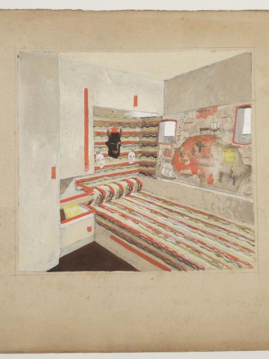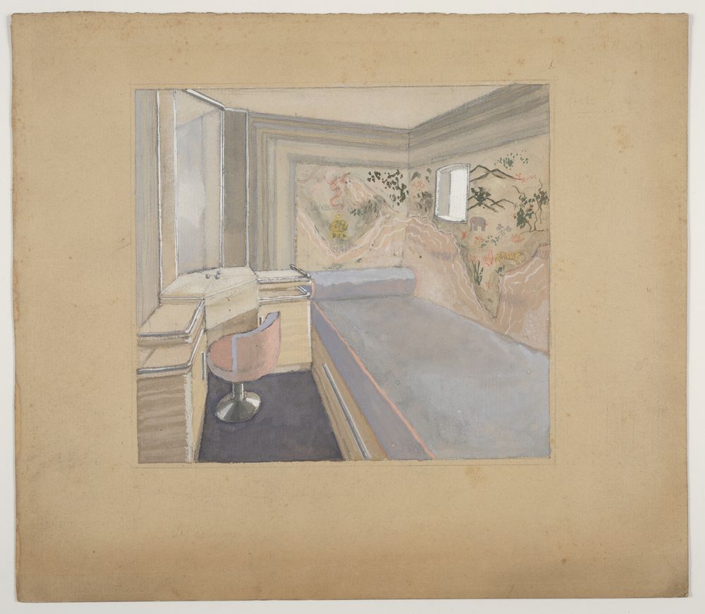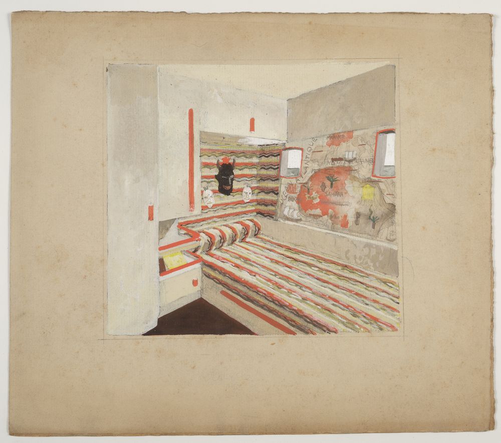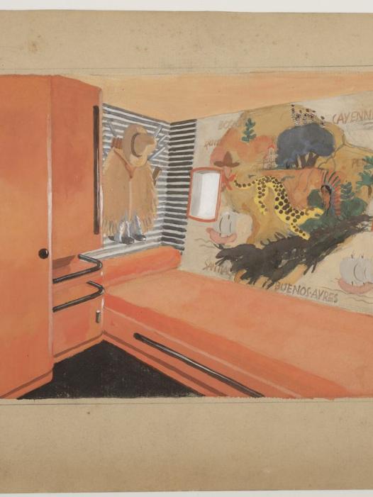 Les dessins conservés au musée Bourdelle se rapprochent de l'état final des cabines livrées pour le yacht d'Esders. On y retrouve les placages en bois clair et les courbes des barres de métal délimitant les meubles que Dufet utilisa pour le Normandie. Pour l'Aronia, Dufet privilégia le duralium, cet alliage d'aluminium inventé en 1908 et apprécié dans le monde du nautisme pour sa légèreté. Le motif de la carte murale, véritable invitation au voyage, fait écho à la fonction du yacht. C’est aussi un poncif des décorations conçues par Dufet qui imagine et dessine lui-même ces mappemondes, plus décoratives qu'exactes géographiquement, qui habillent les bureaux et les chambres qu’il conçoit. Symbole de puissance dans le bureau du secrétariat du maréchal Lyautey (où elle glorifie l’empire colonial français), la carte se fait, dans l’Aronia, geste artistique, les motifs naturels de forêts et de montagnes asiatiques se mariant aux bois précieux et aux tissus de la literie.