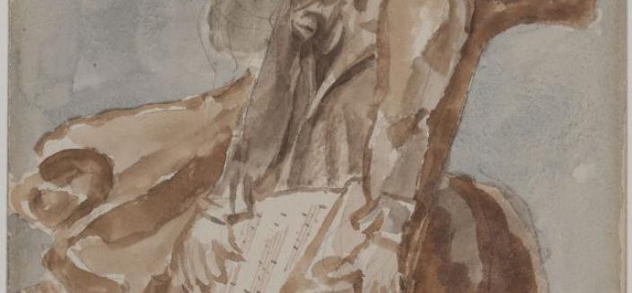 À l’encre ou à l’aquarelle, dans des couleurs sourdes ou éclatantes, Bourdelle emprunte à la grande peinture romantique française ou allemande pour représenter Beethoven méditant sous un arbre automnal, affrontant les éléments contraires avec une colombe pour amie ou immobile sur une croix de pierre, loin des hommes et des obligations.